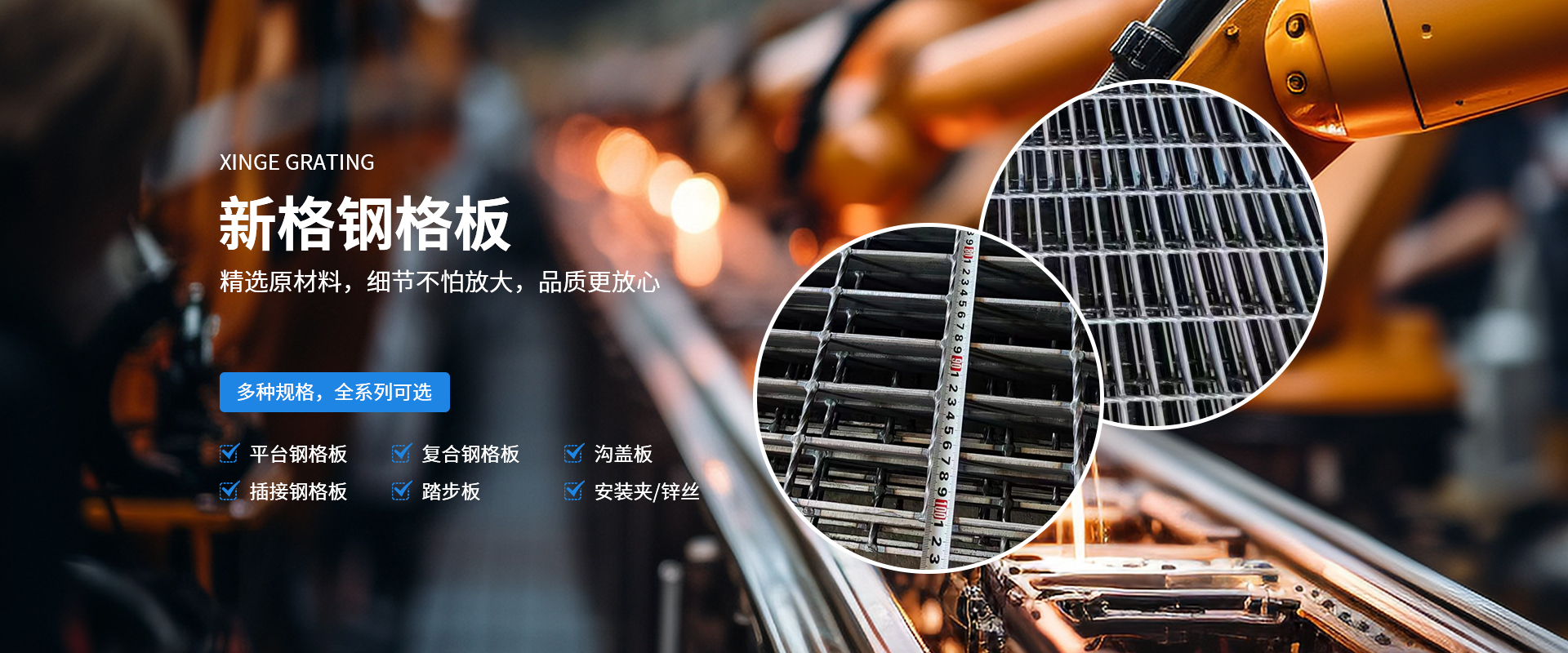 河南新格重工有限公司成立于2007年,占地36000余平方米,是河南省專注于鋼格板設計、制造、銷售的加工制造企業。公司一貫秉承“打造全國鋼格板基地”的企業理念,在“創(chuàng)新、務實、奉獻”的企業精神指引下,逐漸成長為一家具有現代化管理理念、優(yōu)良的企業文化及靈活的經營機制的創(chuàng)新型加工制造企業。 公司采用目前世界上前衛(wèi)的制造技術,由計算機控制的鋼格板壓阻焊機制造,機械手自動將橫桿橫放在均勻排列的扁鋼上,通過強大的電焊功率和液壓力將橫桿壓焊入扁鋼內,從而得到焊點固定、穩(wěn)定性高、強度大的高質量鋼格板。公司擁有成熟的CAD設計、制造技術以及優(yōu)良的工程設施經驗,獨立自主的進出口貿易資質,通過ISO9001資質體系認證。所生產的鋼格板系列產品從外觀質量、尺寸公差、焊接質量等方面均滿足客戶的需求。公司可按中國鋼格板YB/T4001.1-2007標準生產,也可按符合美國ANSI/NAAMM(MBG531-88)、英國BS4592-1987、澳大利亞AS1657-1985等標準進行生產。產品暢銷全國三十多個省、市、自治區,并有部分產品出口到國外,給上百家大型企業提供了堅實可靠的服務,得到了廣大用戶的一致肯定。 公司始終堅持“視品質為生命,視顧客為上帝”的經營宗旨,依托成熟的技術力量及良好的企業信譽,竭誠為廣大用戶提供高質量的產品及全方面的售前、售中、售后服務。 我們全體新格人將帶著真誠的期望,一如既往地以具有競爭力的價格、高質量的產品為工程項目提供盡善盡美的服務,并希望與用戶單位建立長久有好的合作伙伴關系!